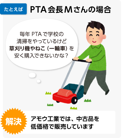 不要になった機械・工具の買取りをしています。納屋や倉庫に眠っている農機具や草刈り機、大工道具などプロ仕様のものに限ります。また、買取った商品を整備して販売もしています。余った建築資材、部品なども取扱っています。